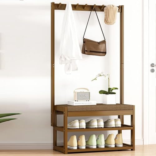 Coat Rack Skobänk, Hall Tree Entryway Förvaringsbänk, 3-i-1 Entryway Bänk med skomakare och krokar, Skoförvaringshyllor och vadderade sittkuddar, för sovrum, hall, storlek, 50-100 cm
