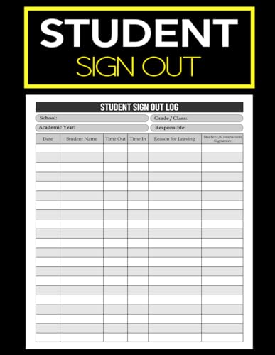 Student Sign Out Log Book: Track Student Movement & Hall Pass Use | Daily Classroom Sign-Out Logbook for Teachers to Monitor Time Out and Behavior