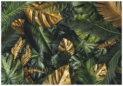 Fototapet blad grön guld natur växter 400 x 280 cm – inkl. lim – för sovrum vardagsrum hall fleece tapet tapet tapet fibertapet motivtapeter