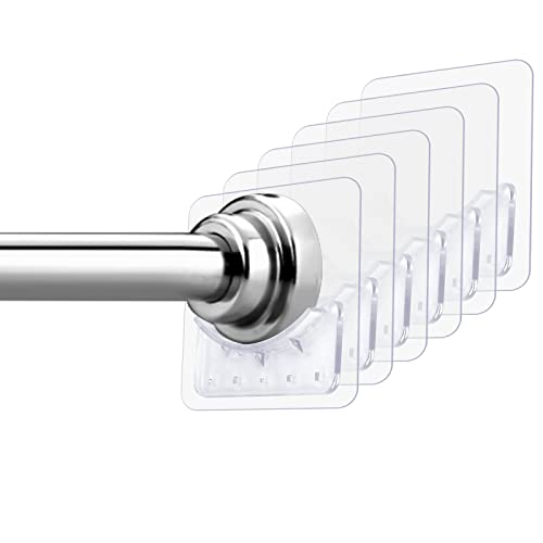 Prasacco 6-delad duschgardinstångshållare, självhäftande väggmonterad duschgardinshållare, självhäftande stångmonteringsbehållare, ingen borrning duschgardinstång hållare för badrum kök
