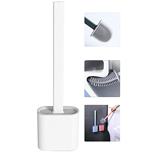 Braoses Toalettborste med hållare, väggfäste och stående toalettborste i silikon, långskaft för toalettborste och snabbtorkande hållare för badrum eller gästtoalett (vit och grå)