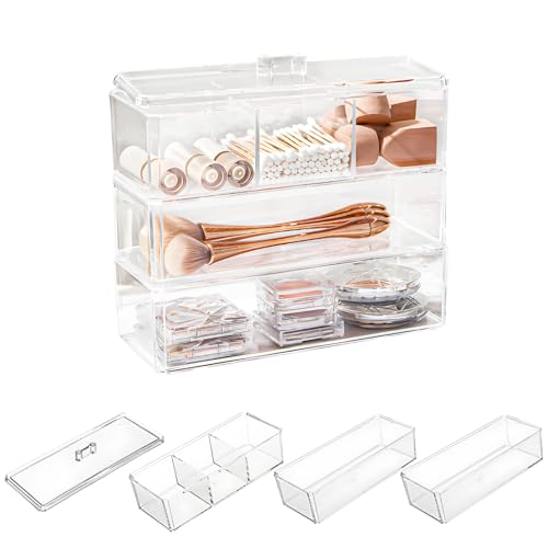 Sorbus genomskinlig kosmetisk sminkorganisatör - smink- och smyckesförvaring, fodral och display - rymlig design - bra hållare för byrå, badrum, sminkbord och bänkskiva (3 stora, 4 små lådor)