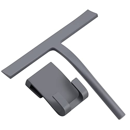 Duschskrapa silikon grå, duschvägg skrapa med hållare för duschdörrar badrum spegel glas rengöring kakel – 22,8 x 3 cm