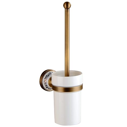 Toalettborste med hållare för badrum antik brons väggmonterad toalett väggmonterad badrum hårdvarutillbehör, porslinsdesign