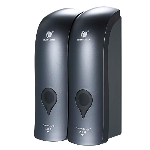 CHUANGDIAN Tvålpump, 300 ml x 2, väggmonterad dispenser, ingen borrning, dubbelhuvud, manuell dispenser/hållare för badrum, duschgel, flytande schampo