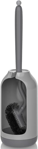 HAMITOR Toalettborste WC-borstset: Djuprengöring toalettborste med kantrenare – flexibel toalettborste hållare för badrum och gästtoalett stående hållbar toalettborste grå