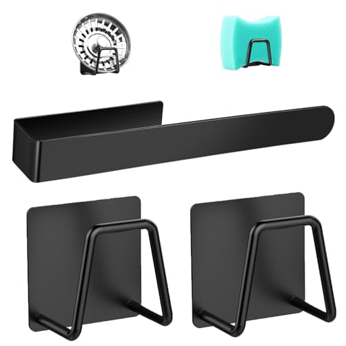 BillyBath handdukshållare utan borrning svart, diskhanddukar, gästhanddukshållare, badhanddukshållare, självhäftande hållare för kök badrum handduk (20 cm)