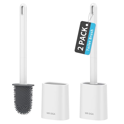MR.SIGA Set med toalettborste och hållare, väggmonterad toalettborste, kompakt toalettborste med hållare för badrum, vit, 2-pack