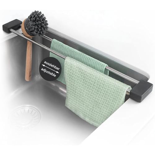 Rierousy Diskdukshållare, svart disktrasa hållare, självhäftande i diskhon och vägg, trasa hållare diskho kan användas som köksorganisatör