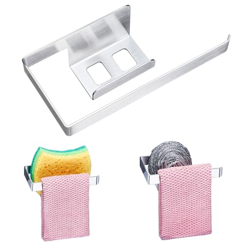 WAYASI Svamphållare kök, svamphållare disktrasa hållare för diskho, disksvamphållare disktrasa, självhäftande trasa, hållare utan borrning, diskho arrangör svamphylla (Silver)