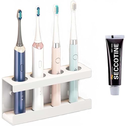 SVOCK Tandborsthållare utan borrning vit, hållare elektrisk tandborste, 4 håls tandborsthållare elektrisk tandborste, tandborstorganisatör vattenabsorption och fuktbeständighet