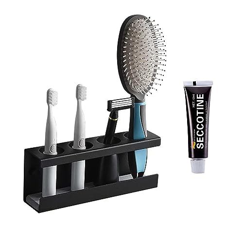 SVOCK Tandborstmugghållare utan borrning, tandborsthållare rostfritt stål, tandborsthållare, svart, 4-håls hållare elektrisk tandborste, vattenabsorption och fuktbeständighet