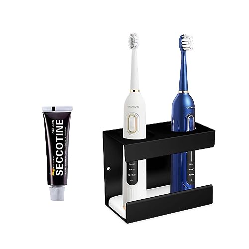 SVOCK Tandborsthållare vägg, tandborstkopphållare svart utan borrning, 2 håls hållare elektrisk tandborste, tandborsthållare väggmontering vattenabsorption och fuktbeständighet