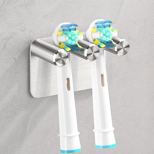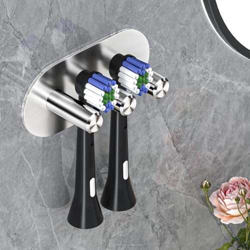 Gsocel Tandborsthållare vägg, tandborsthållare elektrisk tandborste 304 rostfritt stål borsthållare för 2 hållare tandborsthuvuden, silver
