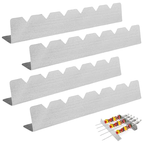 LEKEFETO 4 stycken grillspett ställ: BBQ hållare för 6 spett, rostfritt stål, grilltillbehör, för utomhus camping och vandring