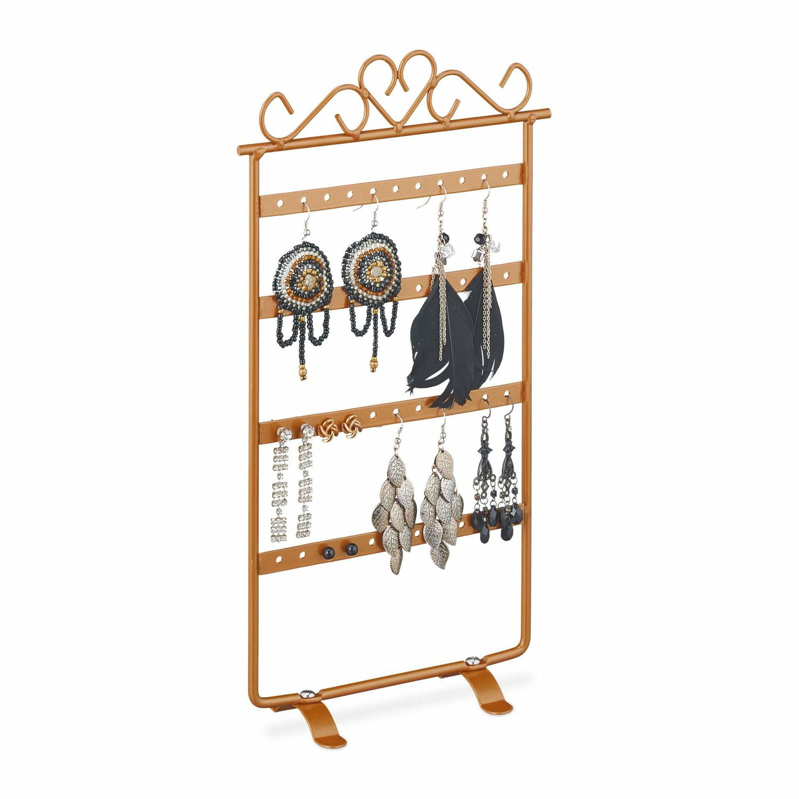Relaxdays Örhänge hållare, smyckesställ för örhängen och långa örhängen, örhängesställ järn, 30,5 x 16,5 x 6,5 cm, guld