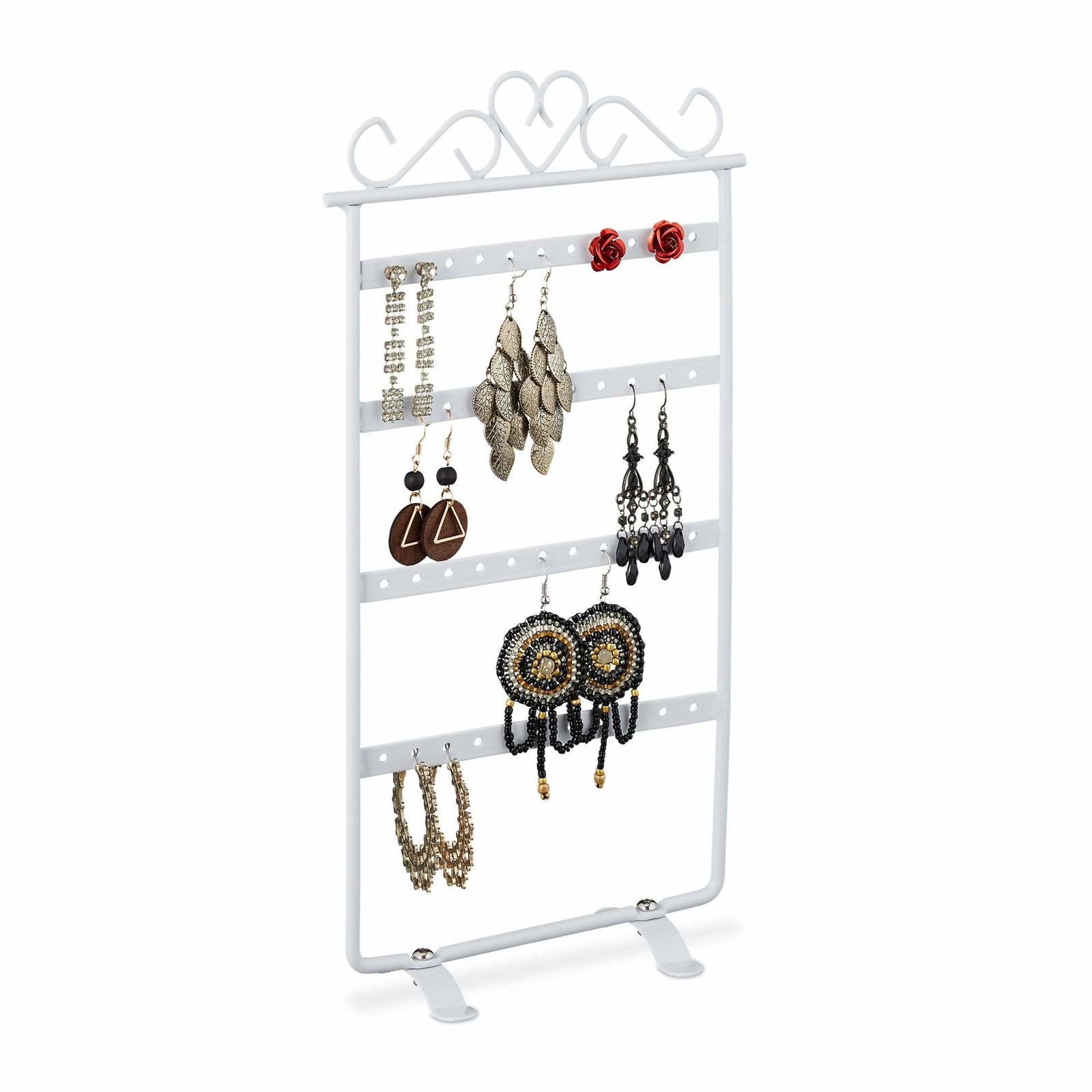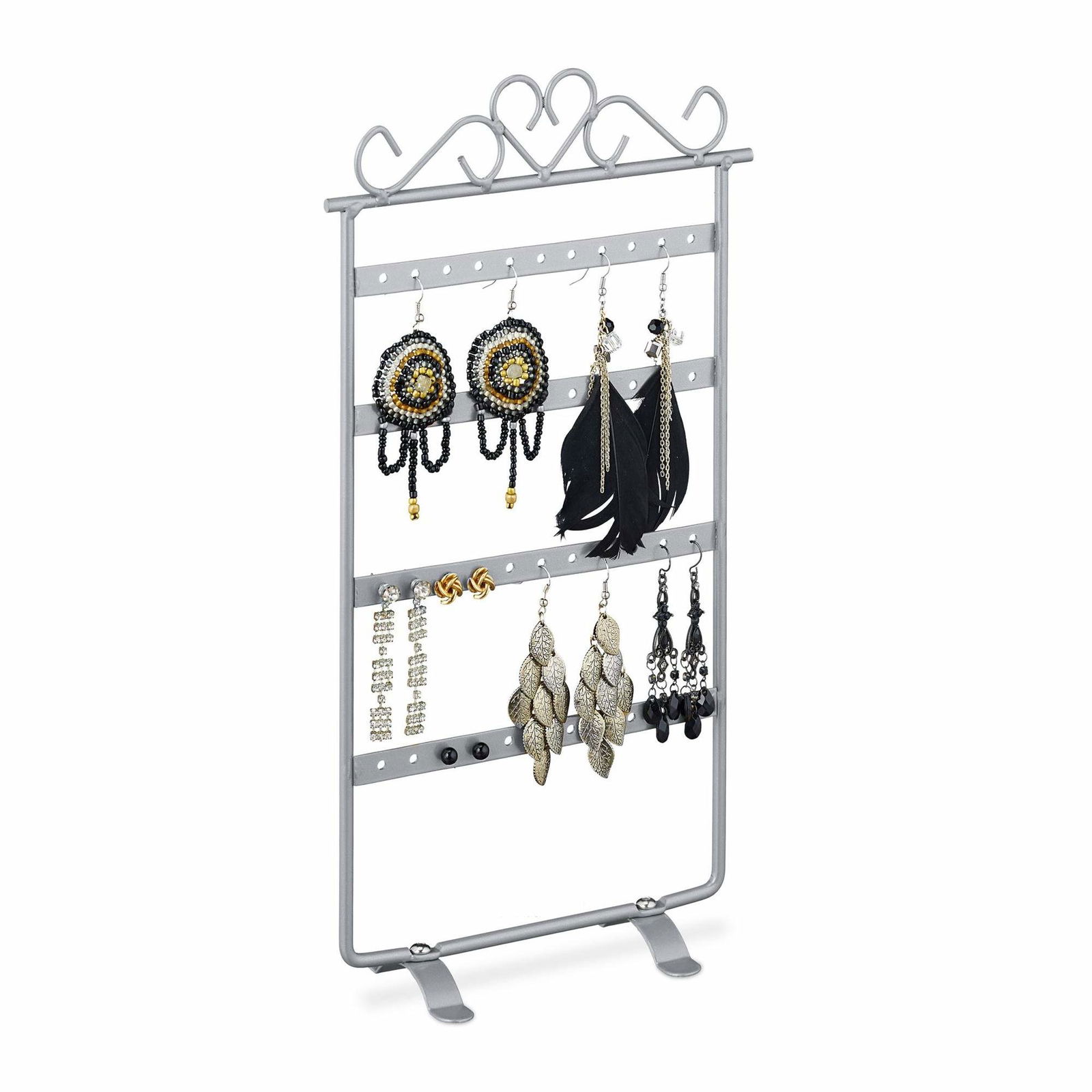 Relaxdays Örhänge hållare, järn, 168 slitsar, roterbara, örhängen och långa örhängen, H x D: 30 x 16,5 cm, svart