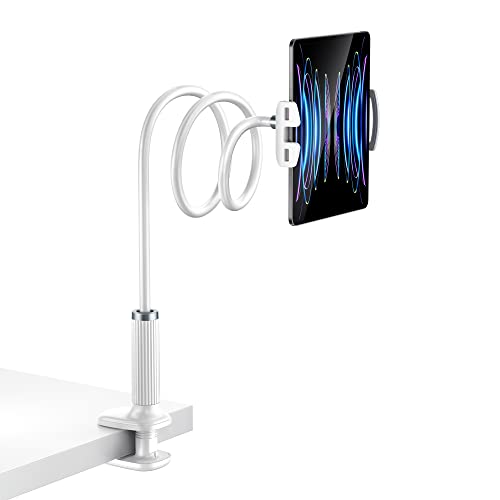 Surfplattehållare, svanhals surfplattehållare – flexibel justerbar arm i sängen för Ipad/mobiltelefon/Switch/Samsung Galaxy Tabs/etc, 98 cm total längd (vit)