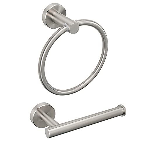 Siyzda Set med 2 badrumstillbehör med ring handdukshängare och hållare för toalettpapper i 304 rostfritt stål och handdukshållare för väggmontering (borstad nickel)