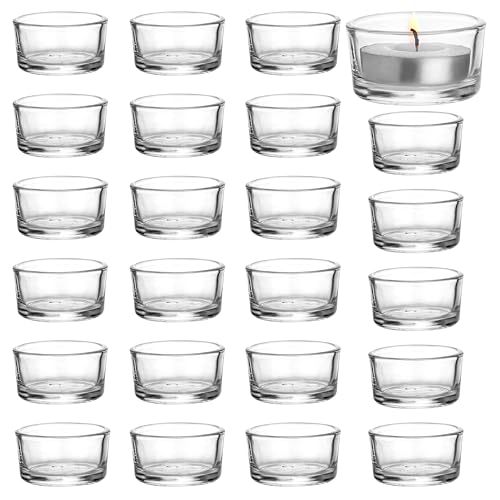 Belle Vous Värmeljus Löftesljus Hållare i Klart Glas Uppsättning (24 Pack) – 4,5 cm Diameter och 2,5 cm Höjd – För Hemdekor, Bröllop, Fest och Bordsdekoration