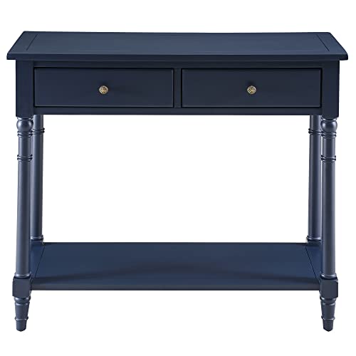 PADMA HOUSE konsolbord, hallbord, hallmöbler, smalt soffbord för vardagsrum, med 2 lådor, öppen hylla, hall, vardagsrum (Blå)