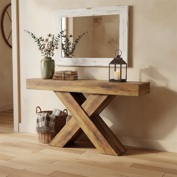 Konsolbord i trä 140cm - Brun / avlastningsbord i trä med X-formad bas / hallbord i trä med stilren design / sidobord i trä