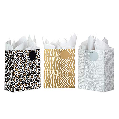 Hallmark 0005EGB6414 Set med 3 x 13 tum djurtryckta presentpåsar med tygpapper - set med 3 förpackningar för julfödelsedagar, djurtryckt papperssats