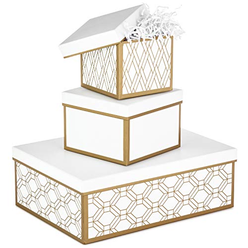 Hallmark Inköpda presentaskar med lock och fyllning (set med 3, vitt och guld, blandade storlekar) för bröllop, möhippor, brudtärnor, jul, hanukkah, födelsedagar, alla hjärtans dag
