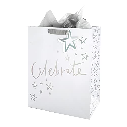 Hallmark multitillfälle stor presentpåse och silkespapper set – holografisk folietextdesign med silverpapper