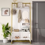 Modern minimalistisk kompaktgarderob med spegel, metallhakar, skostol och klädställ, öppen förvaring, hallmöbel
