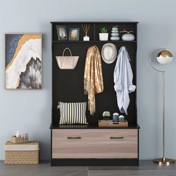 Hallmöbel 3-i-1 med klädhängare, bänk och skåp - Svart