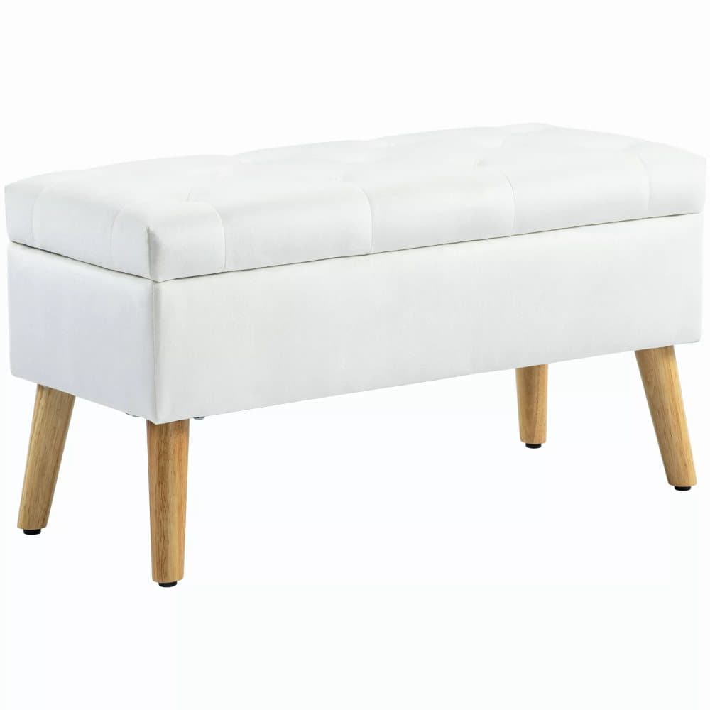 HOMCOM Stoppad Förvaringsbänk i Sammet, Vit - Sängbänk med Lock, Hallmöbel, 80x35x40 cm
