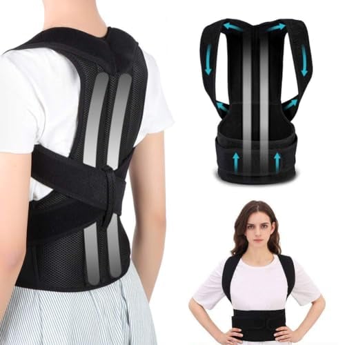FEVAN Justerbar premium rygghållningskorrigerare | Hållningskorrigerare för män och kvinnor | Andningsbar ryggkorrigerare | Lindring av rygg- och cervikal smärta (Large)