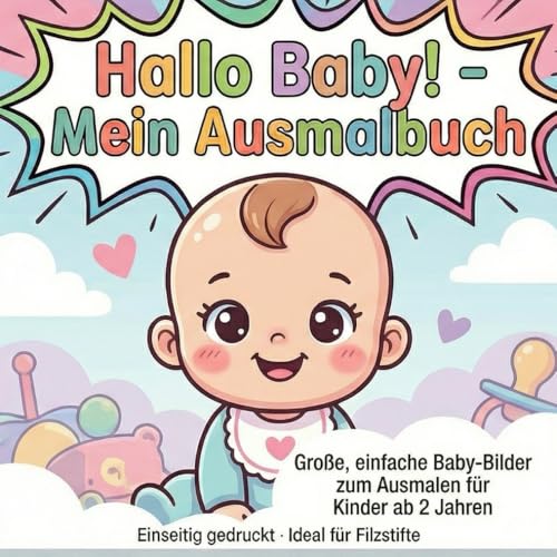 Hallo Baby! - Mein Ausmalbuch: Große, einfache Baby-Bilder zum Ausmalen für Kinder ab 2 Jahren, Einseitig gedruckt - Ideal für Filzstifte