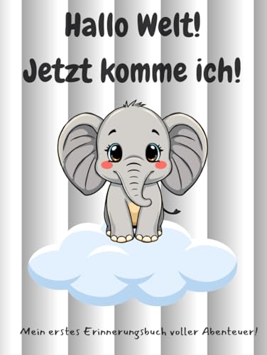 Hallo Welt! Jetzt komme ich!: Elefanten Edition – Das Baby-Erinnerungsbuch im zeitlosen Schwarz-Weiß Design. Ein Meilensteinbuch zum Ausfüllen und Einkleben im Boho-Stil.