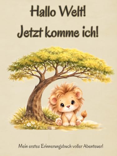 Hallo Welt! Jetzt komme ich!: Löwen Edition - Baby Tagebuch für das erste Jahr – Erinnerungsbuch zum Eintragen & Gestalten – Meilensteine & Momente für Jungen & Mädchen – Hardcover Geschenk zur Geburt