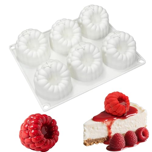 QIUMING Frukt silikonform efterrätt silikon kakform för bakning frukt silikon form brownies kaka non-stick beläggning för brownies, mousse, kakor och desserter (vit, hallon, 5,8 x 6,5 cm)