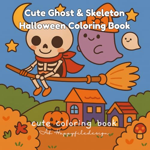 Cute Ghost & Skeleton Halloween Coloring Book: 25 Fun & Cozy Coloring Pages for Kids Featuring Adorable Ghosts and Skeletons