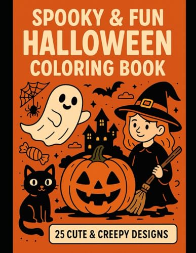 “Spooky & Fun Halloween Coloring Book: 25 Cute & Creepy Designs for Kids, Teens & Adults | Pumpkins, Witches, Ghosts, and Haunted Fun