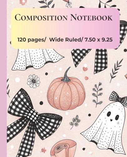Cute Ghost Composition Notebook: Wide Ruled Journal with Gingham Bows, Pumpkins, and Spooky Fall Design (120 pages, 7.5 x 9.25): Halloween - Themed ... Ruled/ School, Journaling, or Everyday Notes