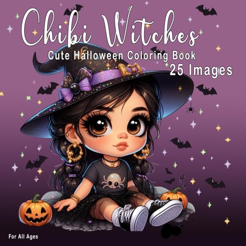 Chibi Witches - Cute Halloween Coloring Book 25 Images: Easy Coloring Book for kids of all ages