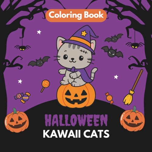 Coloring Book for Kids Halloween Kawaii Cats: 25 Adorable Coloring Pages with Kawaii Catsi in Halloween Theme