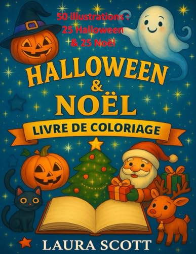Livre de Coloriage Halloween et Noël - 50 Illustrations Magiques à Colorier - dès 3 ans: Deux fêtes en un seul cahier ! 25 pages Halloween + 25 pages ... Fantômes, Père Noël, Rennes et Cadeaux