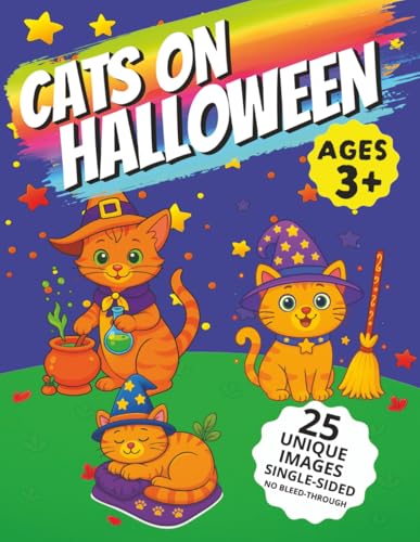 Cats On Halloween: 25 Single-Sided Easy and Fun Coloring Pages For Kids, Preschool and Kindergarten