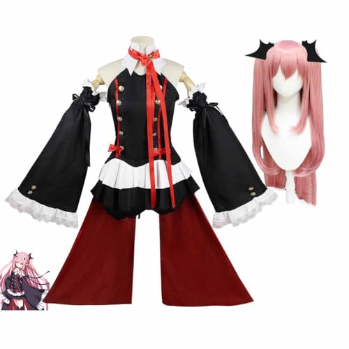 Zhongkaihua Seraph of the end cosplay krul tepes cosplay kostym klänning med utsvängda ärmar outfit full uppsättning krul tepes cosplay peruk accessoarer halloween karneval