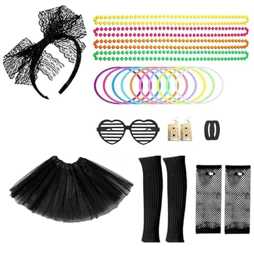 Zuzer Accessoarer 80-tal dam 25 st 80/90 år kostym mörk karneval skiva kläder halloween tema fest tillbehör
