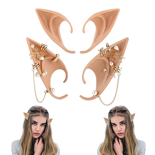 Yolev öronspetsar med öronpiercings och örhängen - cosplay-öronspetsar för feer och älvor med pärlörhängen och kedje-set, accessoarer för halloween, julens älvkostymer och cosplay-öron.