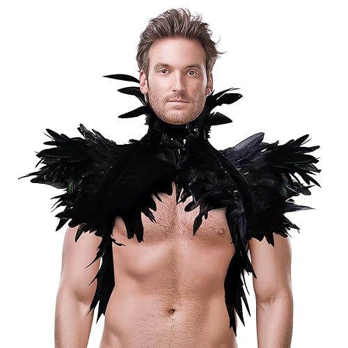 Darryy Fjäderkappa, fjäderkostym, gotisk halloweenkostym accessoarer, fjädercape svart, lämplig för halloween, karneval, cosplay, maskerad, scenshow (svart)