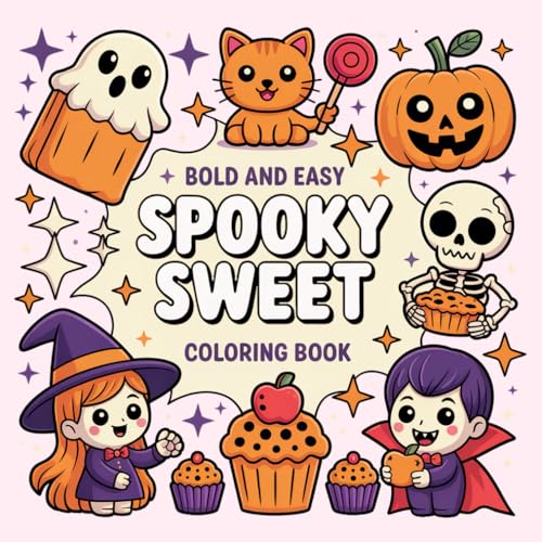 Bold And Easy Spooky Sweet: Bold and Easy Coloring Book for Adults, Teens, and Kids with Cute and Spooky Halloween Treats, Candy, Pumpkins, and Sweet Designs for Relaxation and Stress Relief