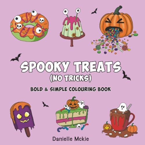 Spooky Treats (No Tricks) Bold and Simple Colouring Book: 40 Cute and Spooky Coloring Pages, Halloween Desserts & Candy, Activity for Kids, Teens & Adults, (8x8")